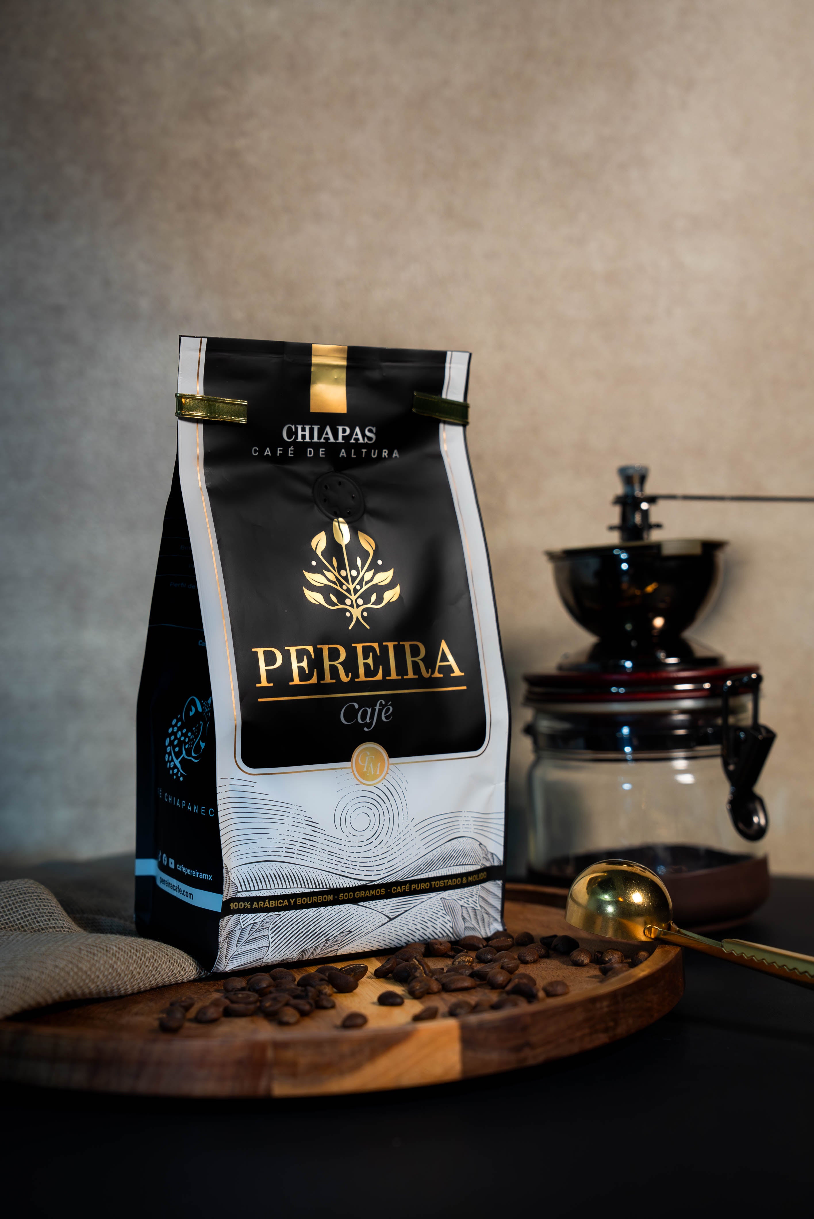 Café de altura, una mezcla 100% arábica y Bourbon, cultivada en Chiapas, México. El café ha sido beneficiado con el método "prima lavado". En su perfil de taza, se distinguen notas a nueces y caramelo, con un sabor redondo y suave, y una acidez que presenta toques cítricos.